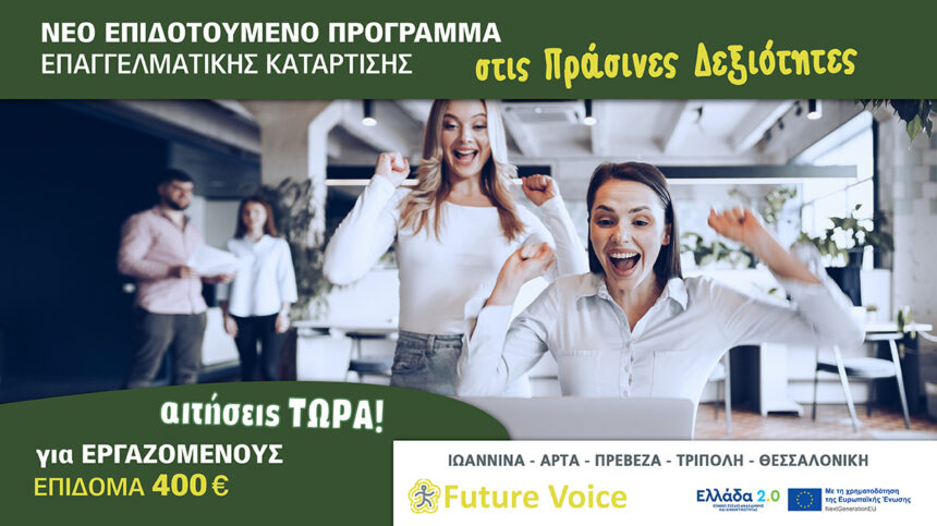 Τα επιδοτούμενα σεμινάρια θα έχουν αντικείμενο τις Πράσινες Δεξιότητες.