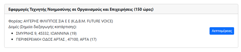 ΤΙΤΛΟΣ ΠΡΟΓΡΑΜΜΑΤΟΣ : Εφαρμογές Τεχνητής Νοημοσύνης σε Οργανισμούς και Επιχειρήσεις